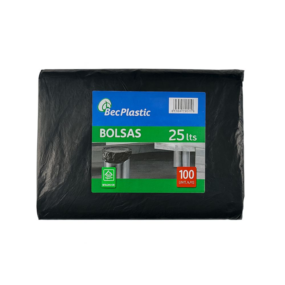 Bolsa Negra 25 Lt × 0.06 Micra × 100 Und x pqt