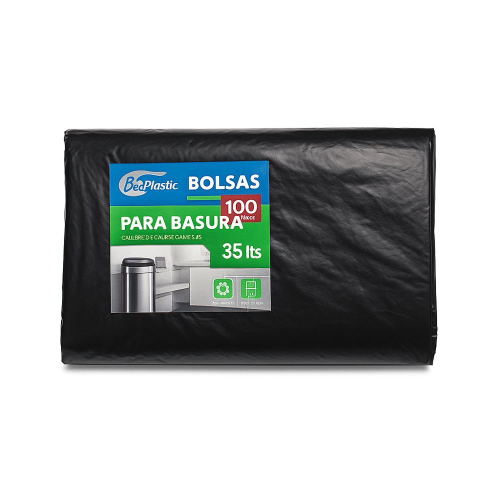 Marca / Fabricante: Bec Plastic Capacidad: 35 litros Ancho: 20” Largo: 28” Color: Negro Espesor: 0.06 micra Material: Polietileno reciclado Densidad: Alta Tipo de sello: Sello en fondo resistente Rango de tolerancia: ± 5 % Presentación: Paquete de 100 unidades Uso recomendado: Recolección de residuos comunes en oficinas, hogares, restaurantes y comercios
