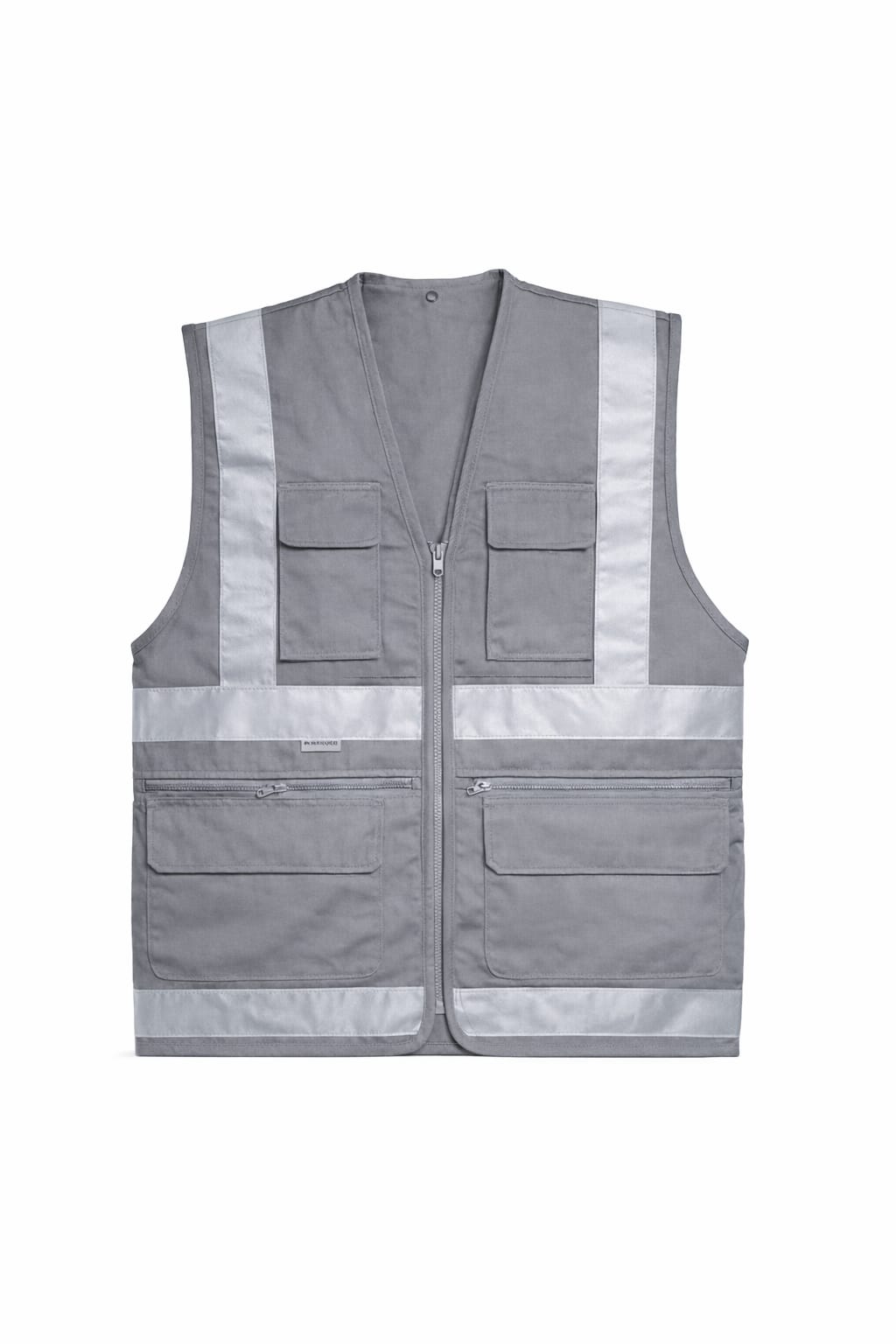 Chaleco de seguridad diseñado para visibilidad y funcionalidad en entornos operativos, ideal para trabajos de campo, mantenimiento e industria. Su confección en tela dril de alta resistencia brinda durabilidad y comodidad durante la jornada laboral.